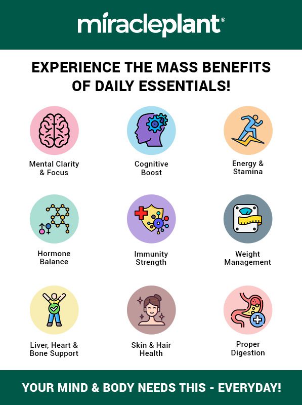 DAILY ESSENTIALS by Miracle Plant offers crucial nutrients that your MIND & BODY NEED – EVERYDAY!